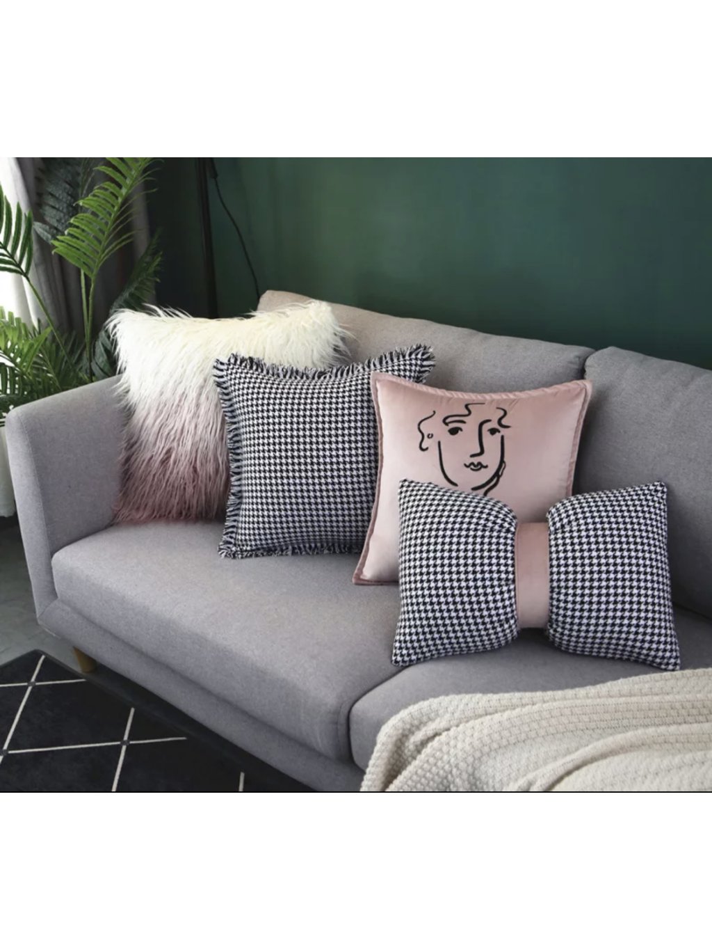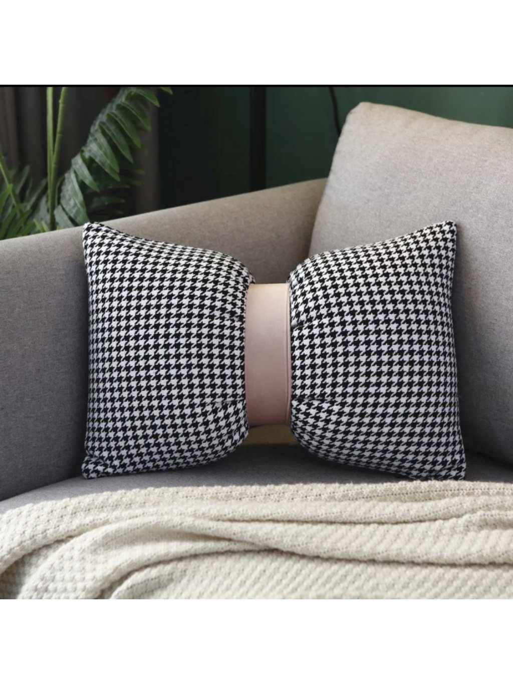 Povlak na polštář ve tvaru mašle. Rozměr 30x55 cm. Materiál bavlna, umělá kožešina.