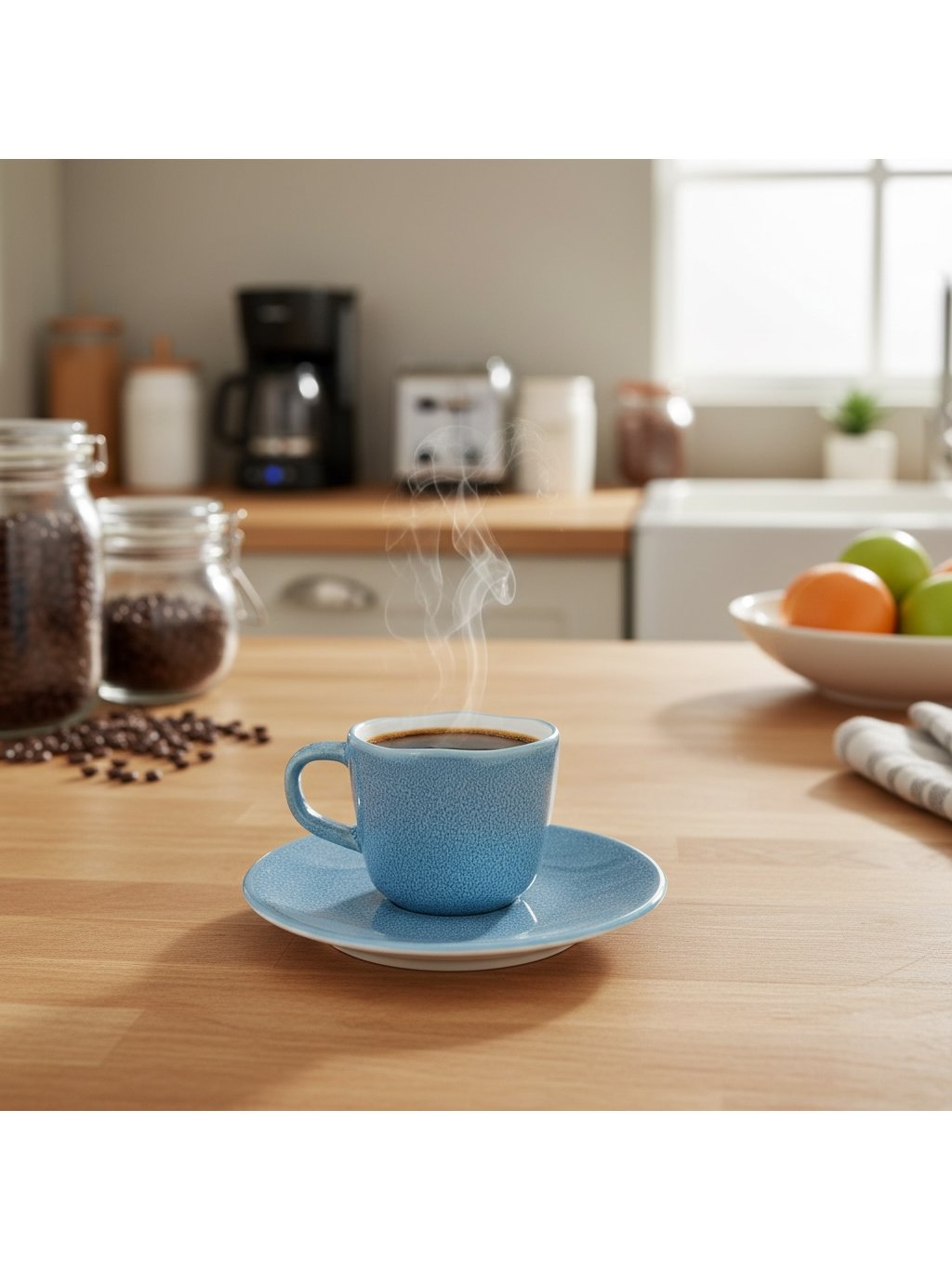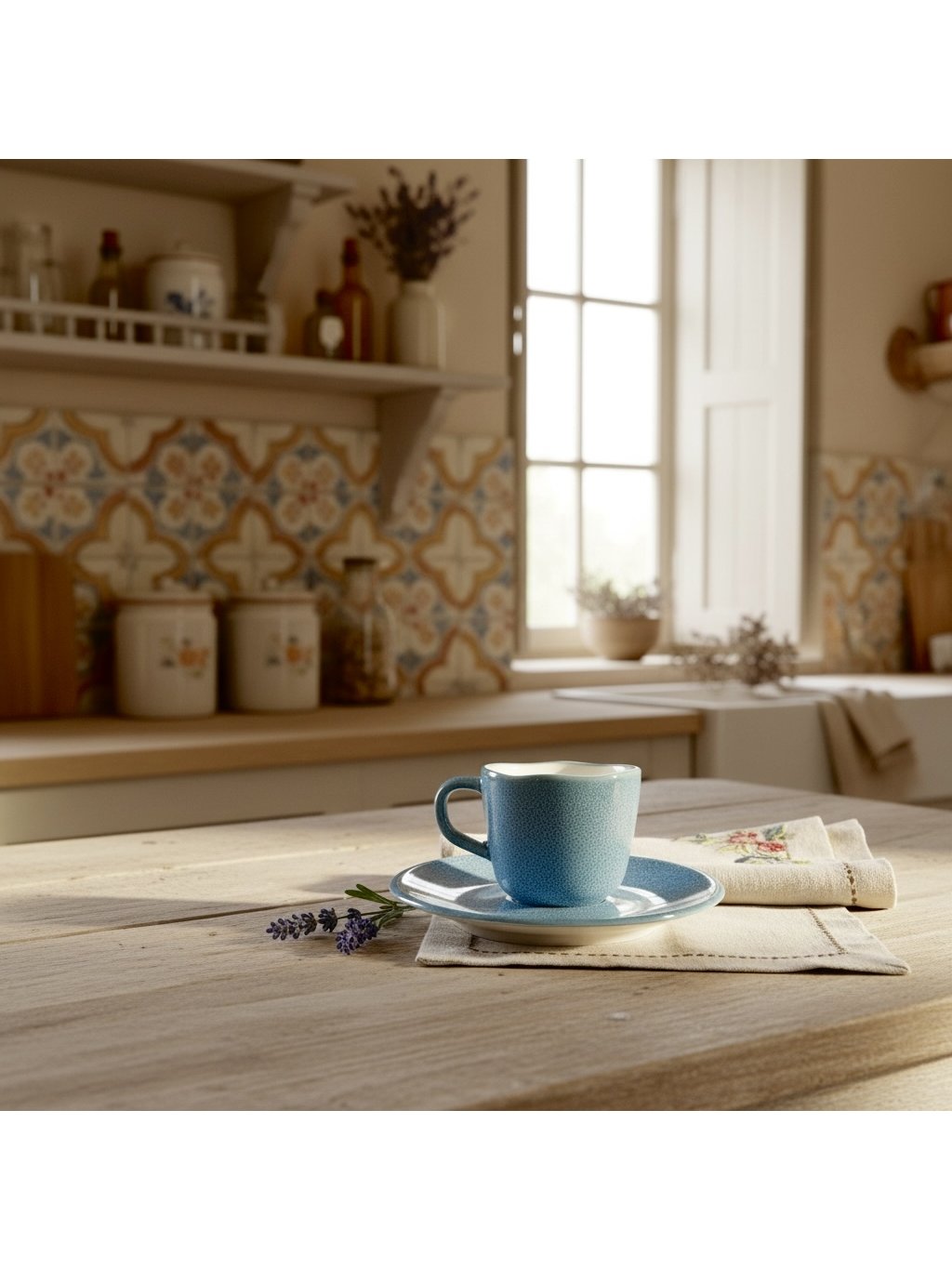 Dopřejte si chvíli středomořské pohody s naší modrou šálkou s podšálkem na espresso. Tento elegantní set v nádherném modrém odstínu, inspirovaný barvami Středomoří, vnese do vaší kuchyně i do vašeho každodenního rituálu šálek opravdový nádech letní atmosféry. Jeho jednoduchý, ale stylový design se hodí jak k modernímu, tak k rustikálnímu interiéru a zaručí, že si své espresso vychutnáte s opravdovým potěšením.