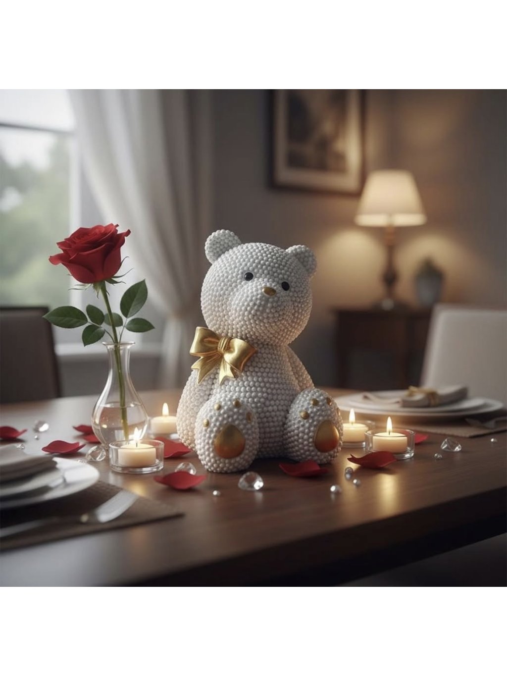 Polyresinový materiál zajišťuje vysokou odolnost a precizní zpracování detailů. Dekorace se krásně vyjímá na poličce, komodě nebo v dětském pokoji jako decentní, ale zároveň výrazný prvek. Zlato-bílý sedící medvídek je také skvělým tipem na milý dárek, který potěší svou něžností i elegantním provedením. ![]()