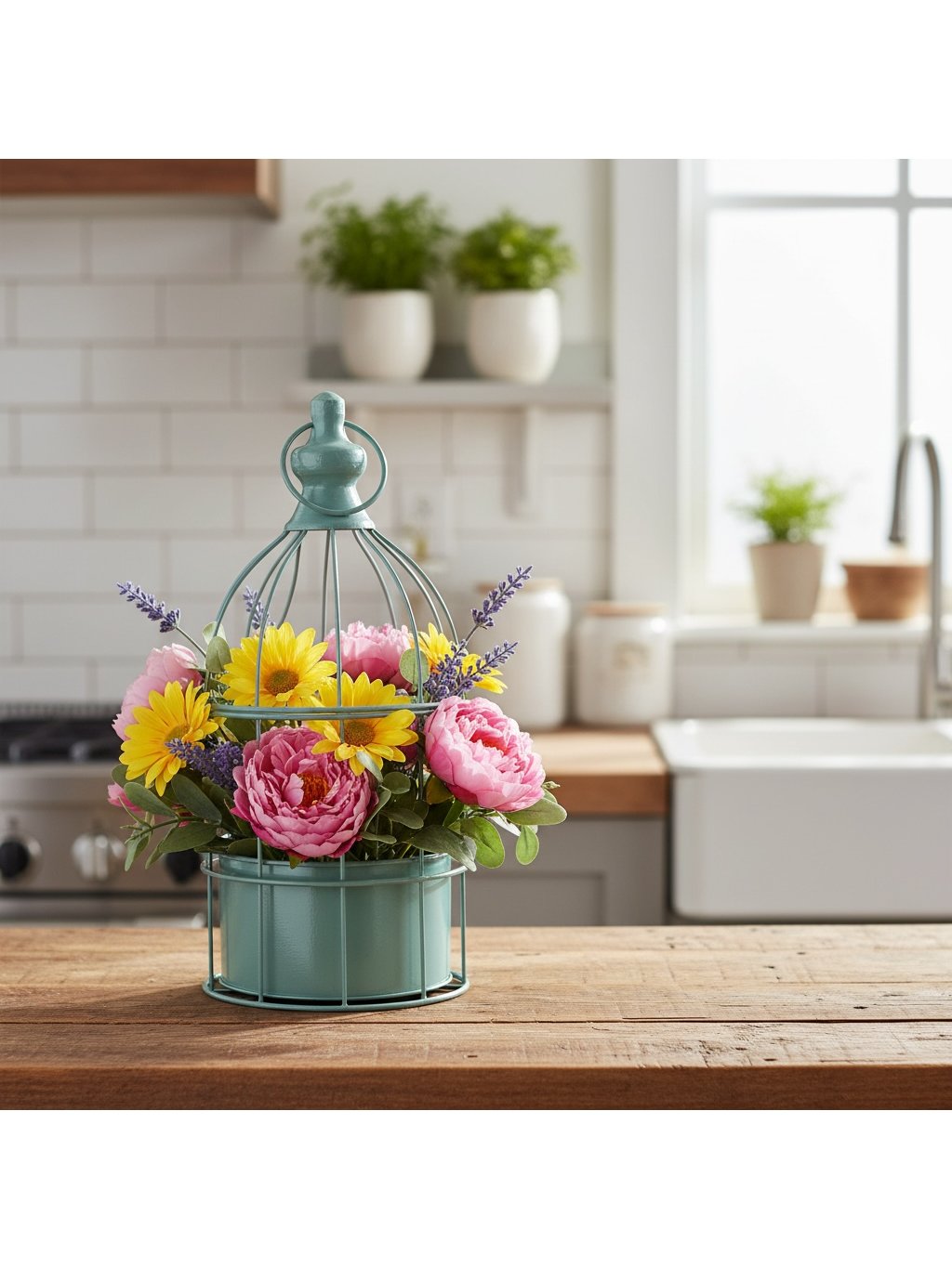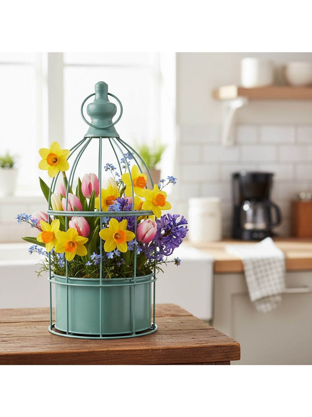 Květináč ve tvaru ptačí klece je originální dekorací, která vnese do interiéru i na terasu romantickou a lehce vintage atmosféru. Jemné detaily inspirované ptačí klecí dodávají květináči vzdušnost a osobitý charakter, díky kterému krásně vynikne každá rostlina.