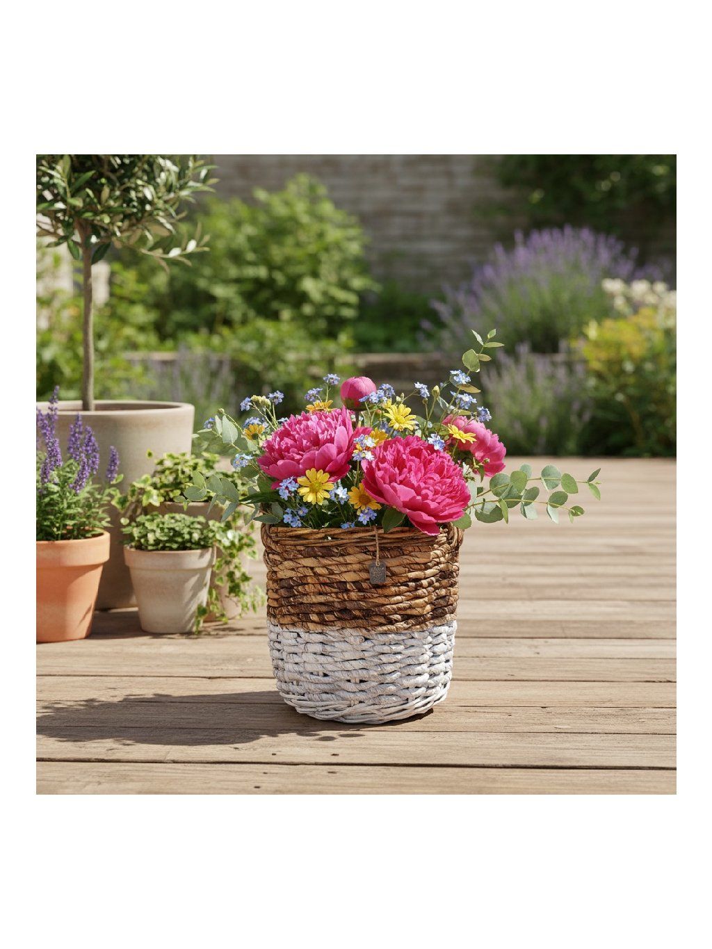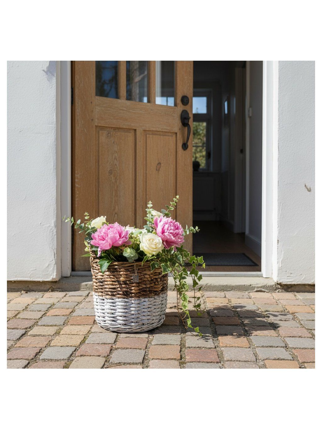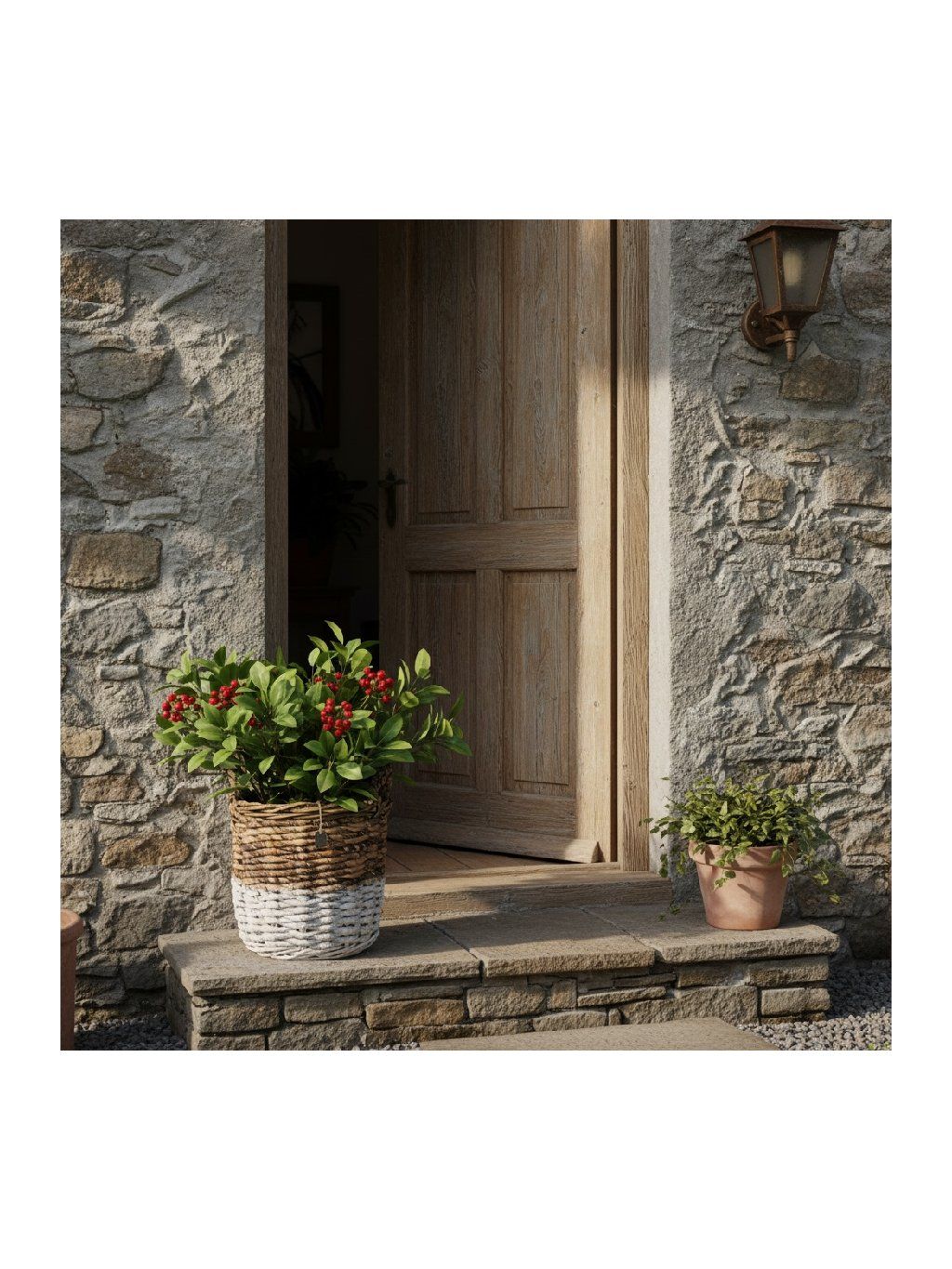 Koš je vybaven praktickými uchy, která usnadňují přenášení, a nabízí široké využití – jako obal na květináč, úložný prostor na deky, polštáře nebo drobnosti na terasu. Díky svému designu se stane nejen praktickým pomocníkem, ale i výrazným dekorativním prvkem.