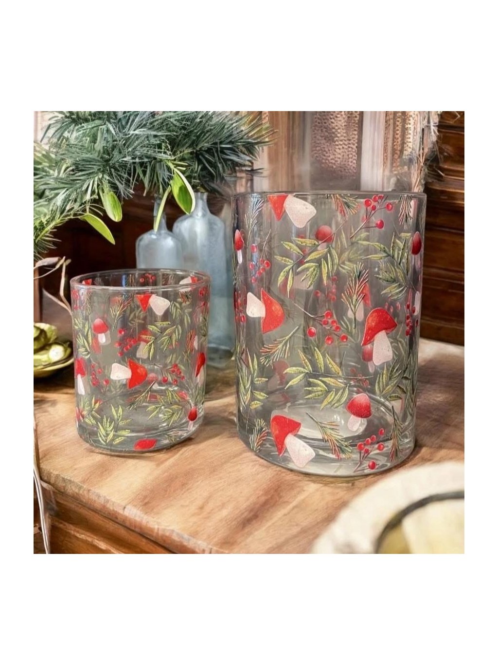 Vneste do svého domova kouzelnou atmosféru s touto sadou dvou skleněných svícnů Clayre & Eef zdobených motivem červených muchomůrek a zimní zeleně. Svícny o rozměrech Ø 7 × 8 cm a Ø 10 × 13 cm jsou ideální na čajové svíčky a krásně rozptýlí jejich světlo, které vytvoří hřejivý a útulný dojem. Díky svému originálnímu designu se hodí nejen na zimní večery, ale také jako dekorace k vánoční výzdobě či do přírodně laděného interiéru. Elegantní a hravý detail, který vnese radost a pohodu do každého prostoru.