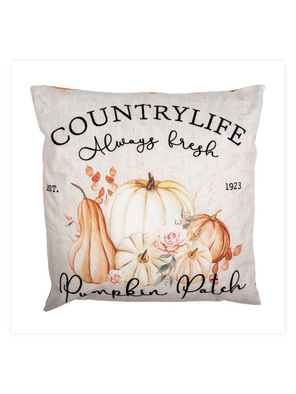 Tento béžový povlak na polštář je zdoben rustikálním vzorem oranžové dýně a má pohodlné zapínání na zip. Skvěle se hodí jako dekorace, zejména na podzim!