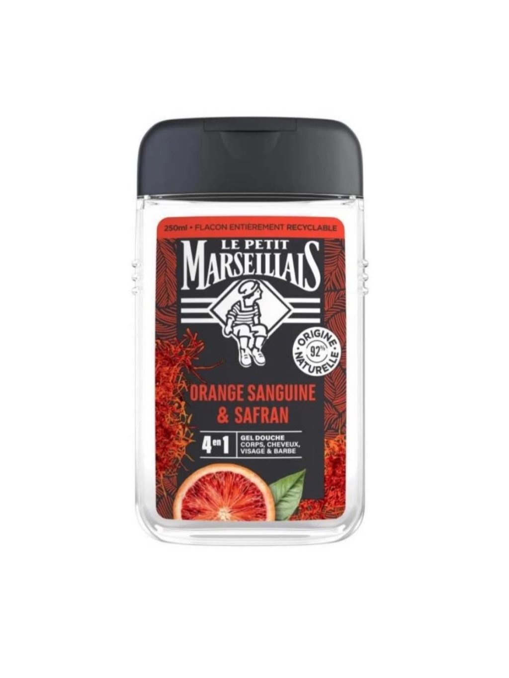 LE PETIT MARSEILLAIS sprchový gel pro muže 4v1 s ČERVENÝM POMERANČEM a ŠAFRÁNEM, 250ml.