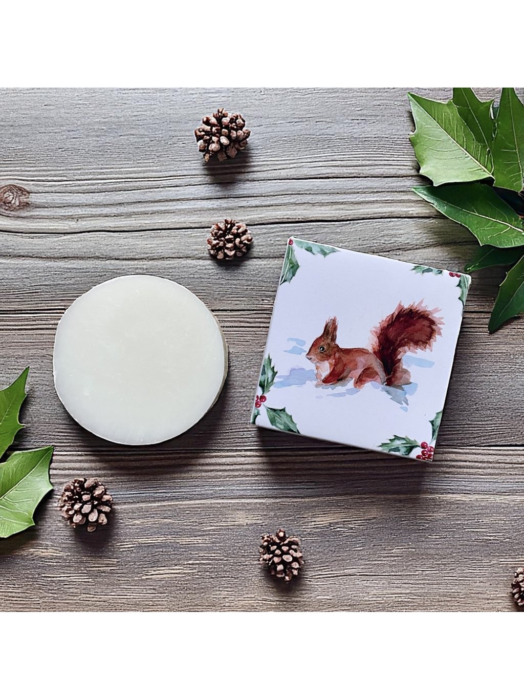 Mýdlo je baleno v krabičce s akvarelem veverky.