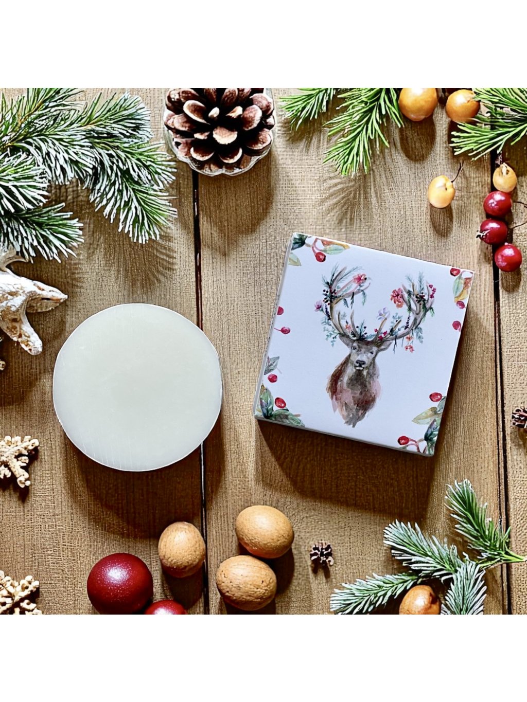 Mýdlo je baleno v krabičce s akvarelem jelena.