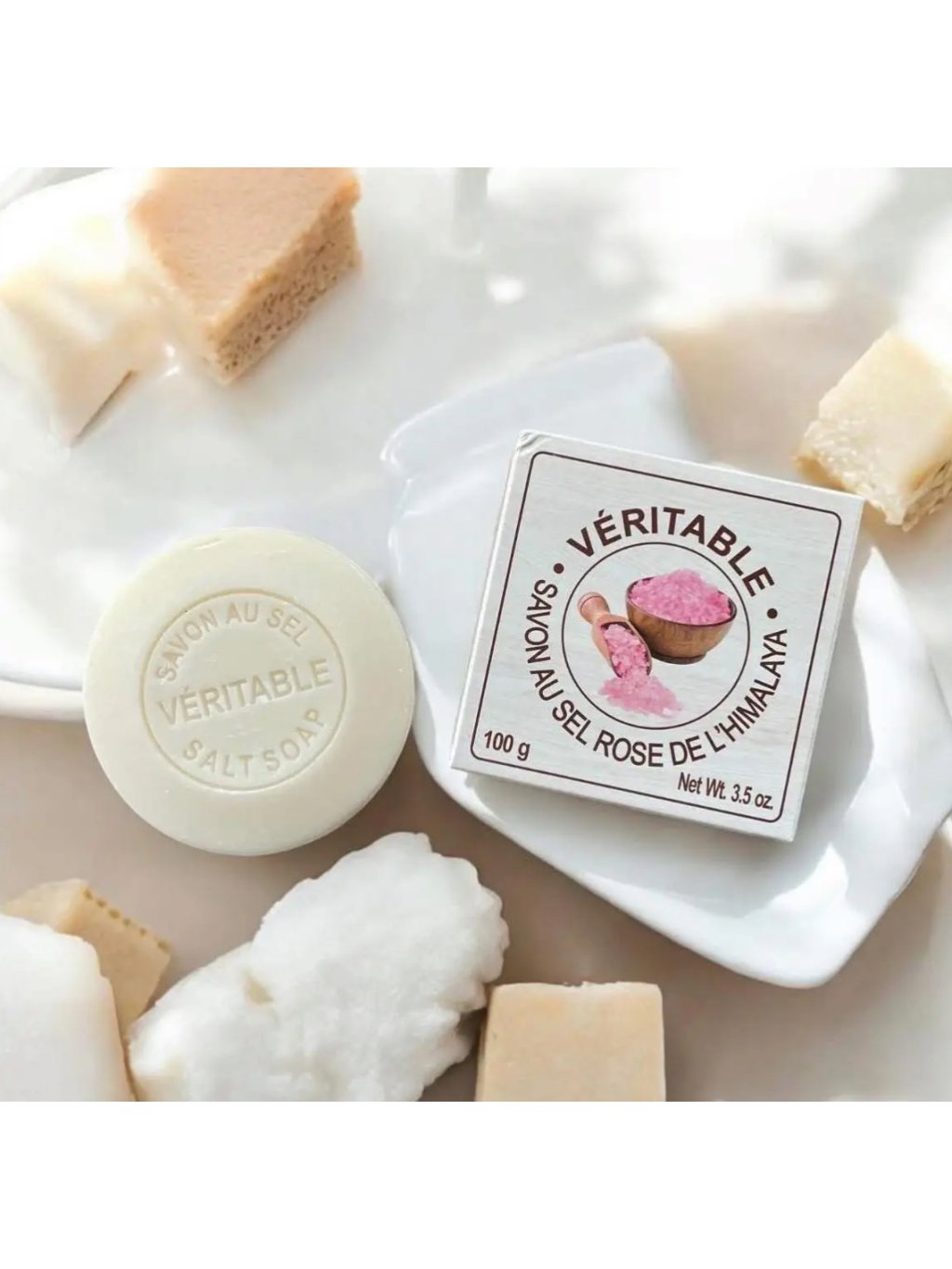 Kulaté mýdlo 100g s himálajskou růžovou solí, s obsahem olivového oleje Nyons a organického bambuckého másla