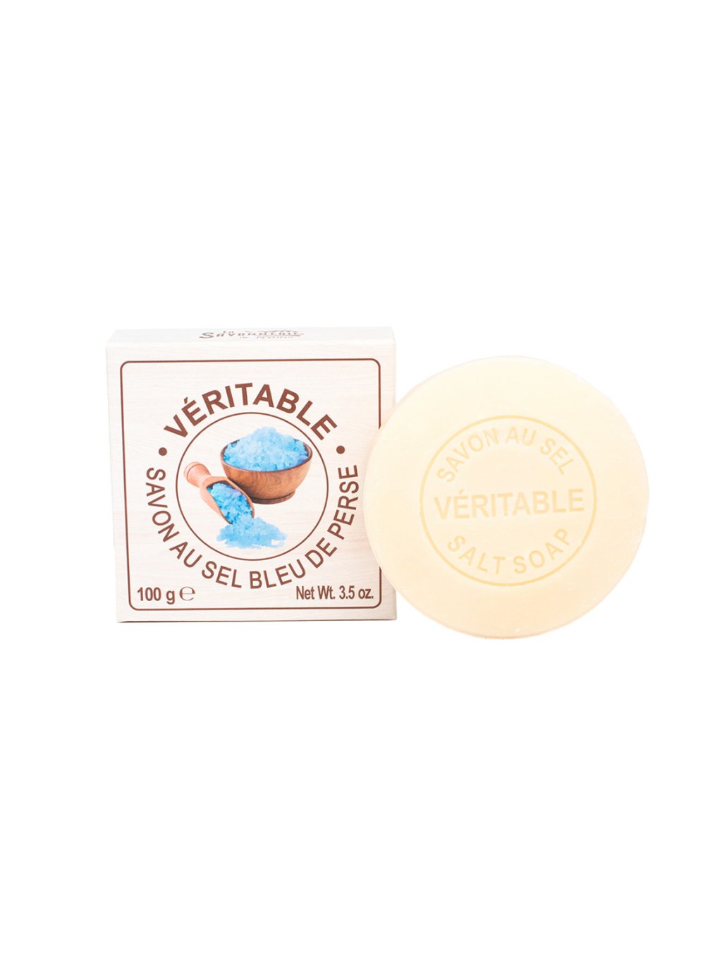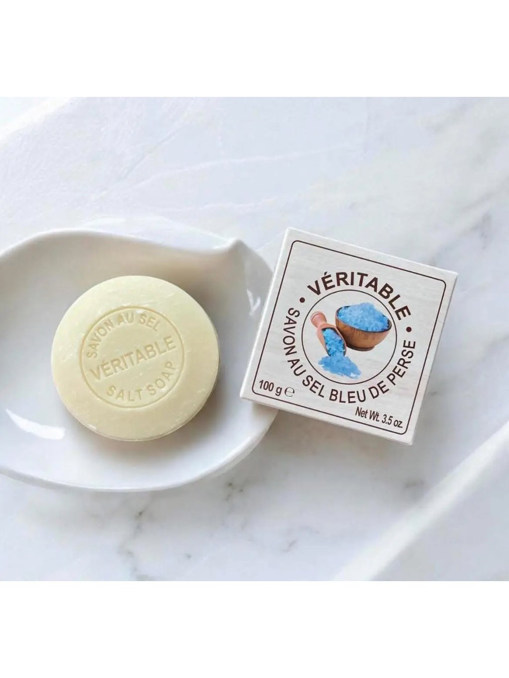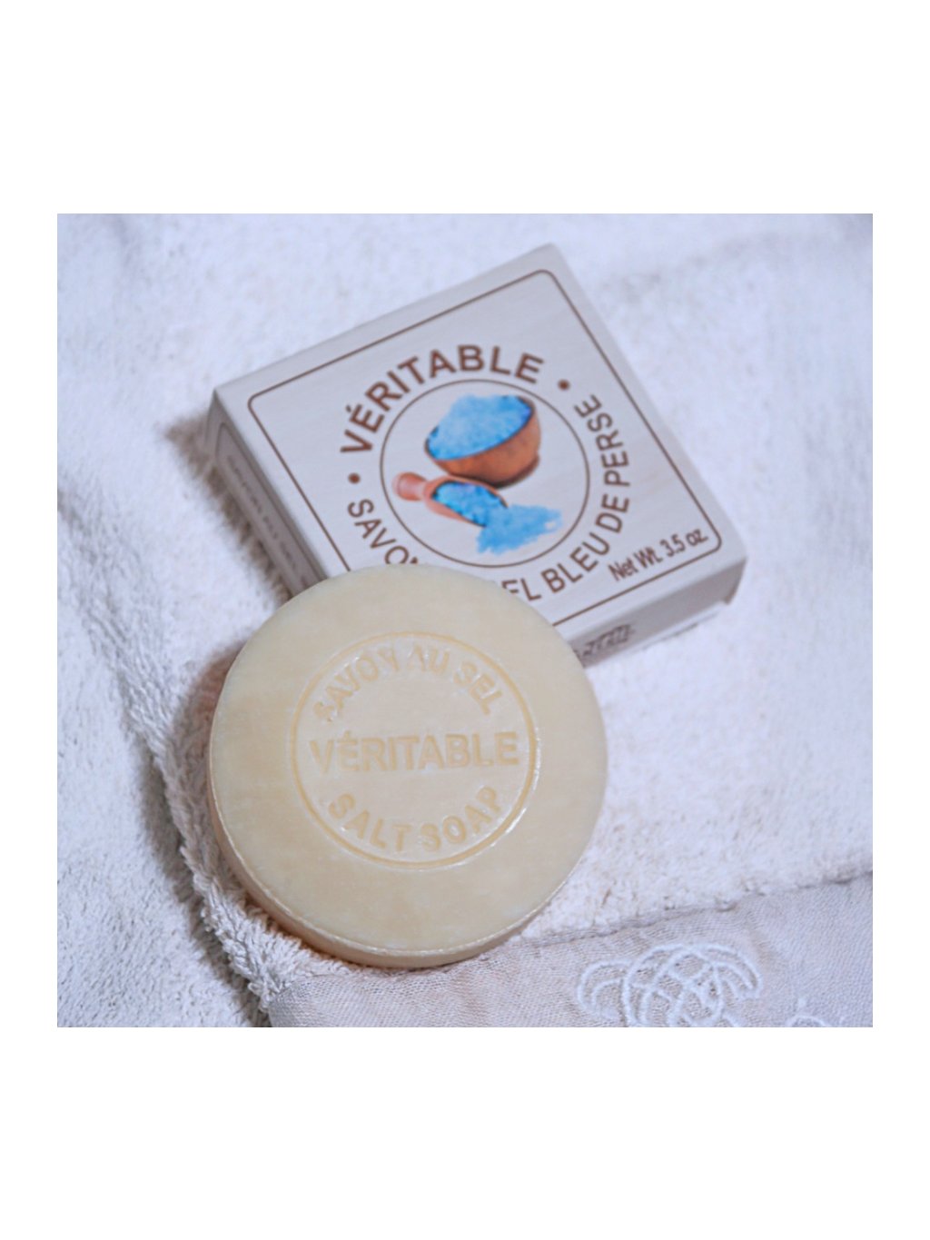 Kulaté mýdlo 100g s perskou modrou solí, s obsahem Nyons olivového oleje a organického bambuckého másla.