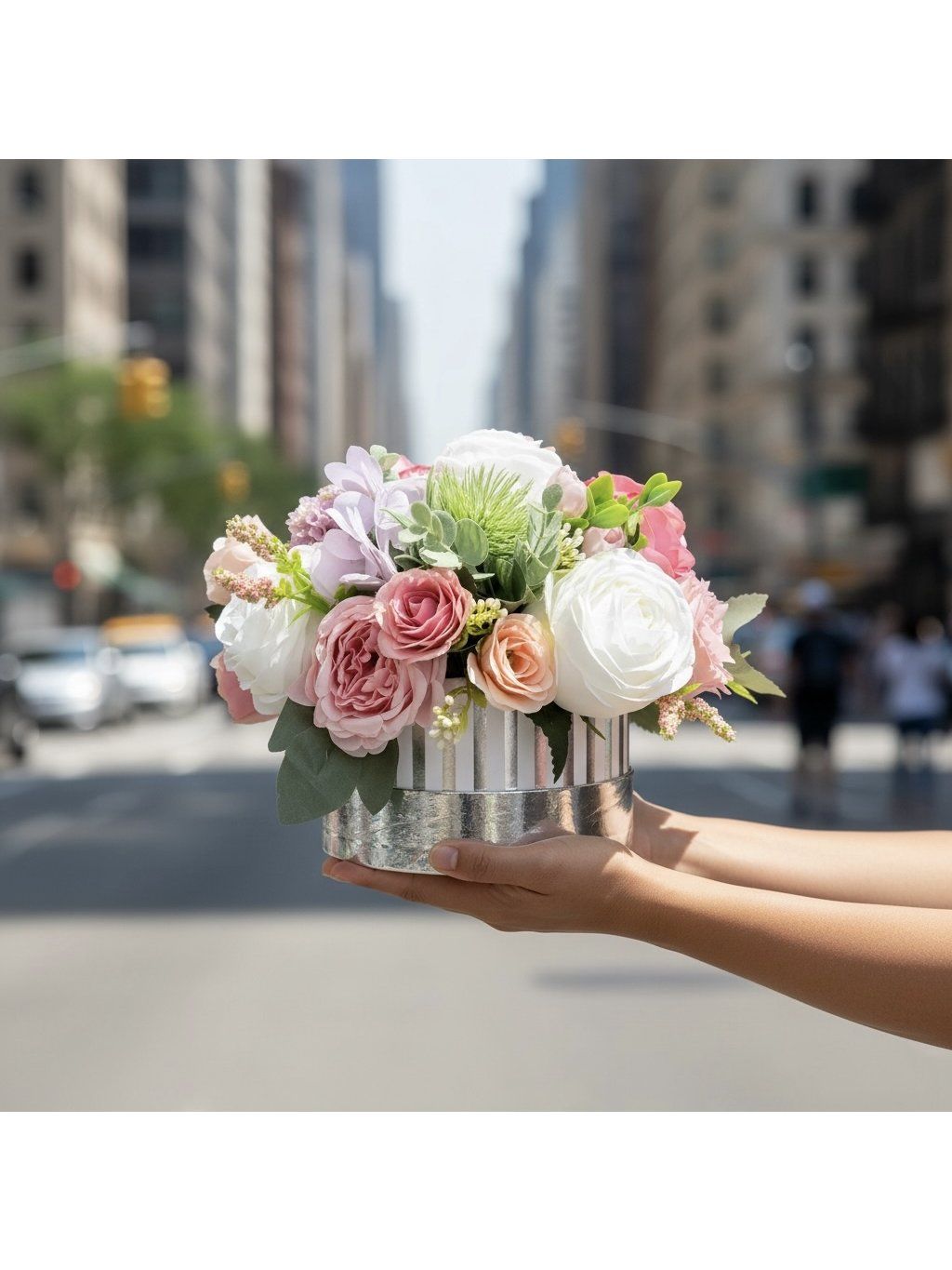 Květinový box nevyžaduje žádnou péči a zůstane krásný po dlouhou dobu. Ideální volba pro milovníky romantických dekorací, jemných barev a elegantního stylu.
