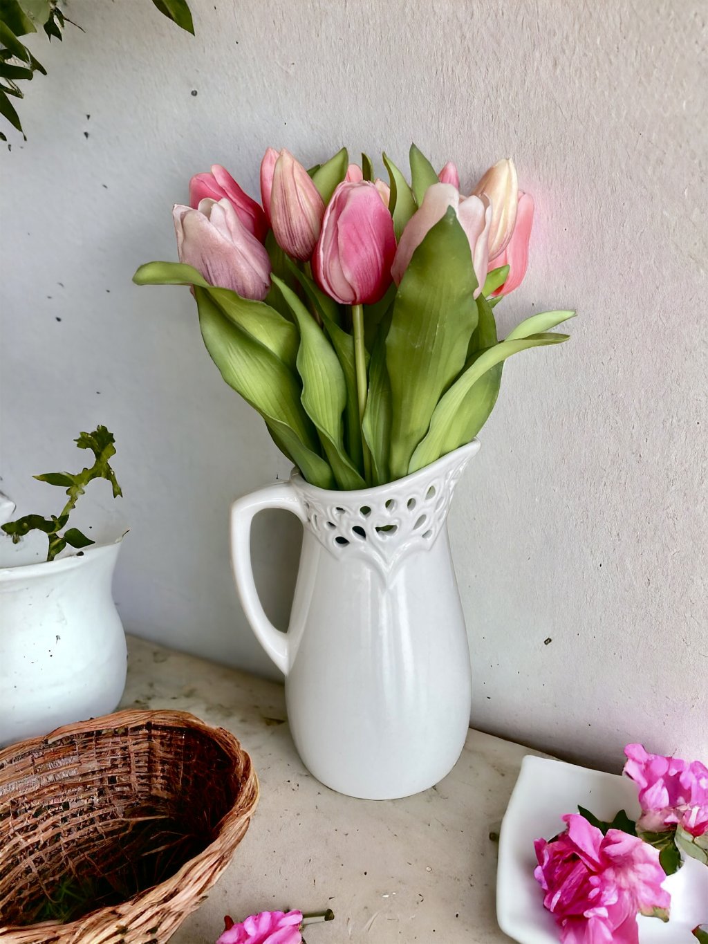 Živé tulipány jsou krásné jarní květiny, ale ve váze vydrží sotva týden. Pokud se jimi chcete kochat déle, vsaďte na umělé kytice tulipánů.