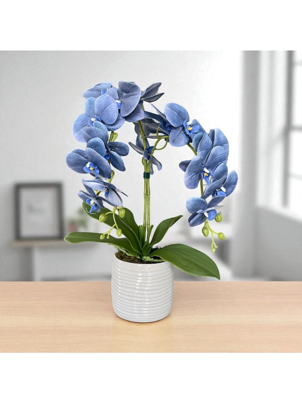 Exotická orchidej je svým zpracováním nerozeznatelná od živé. Na stonku jsou působivě zabarvené velké květy. Orchidej se stane dominantou každého interiéru.
