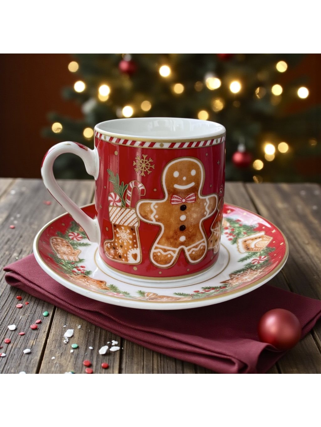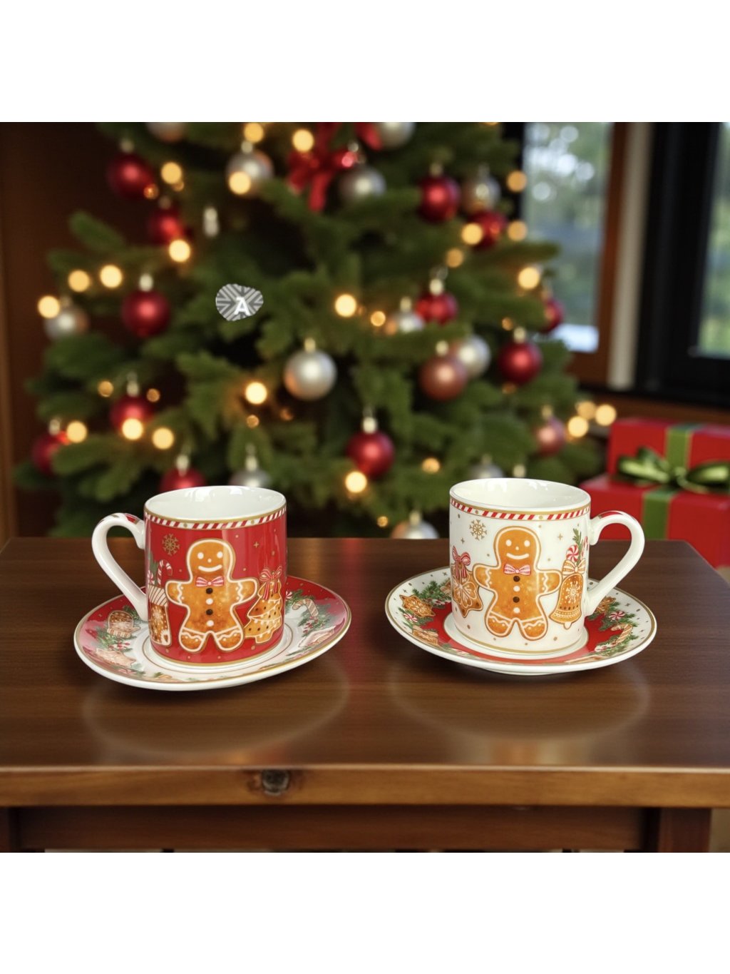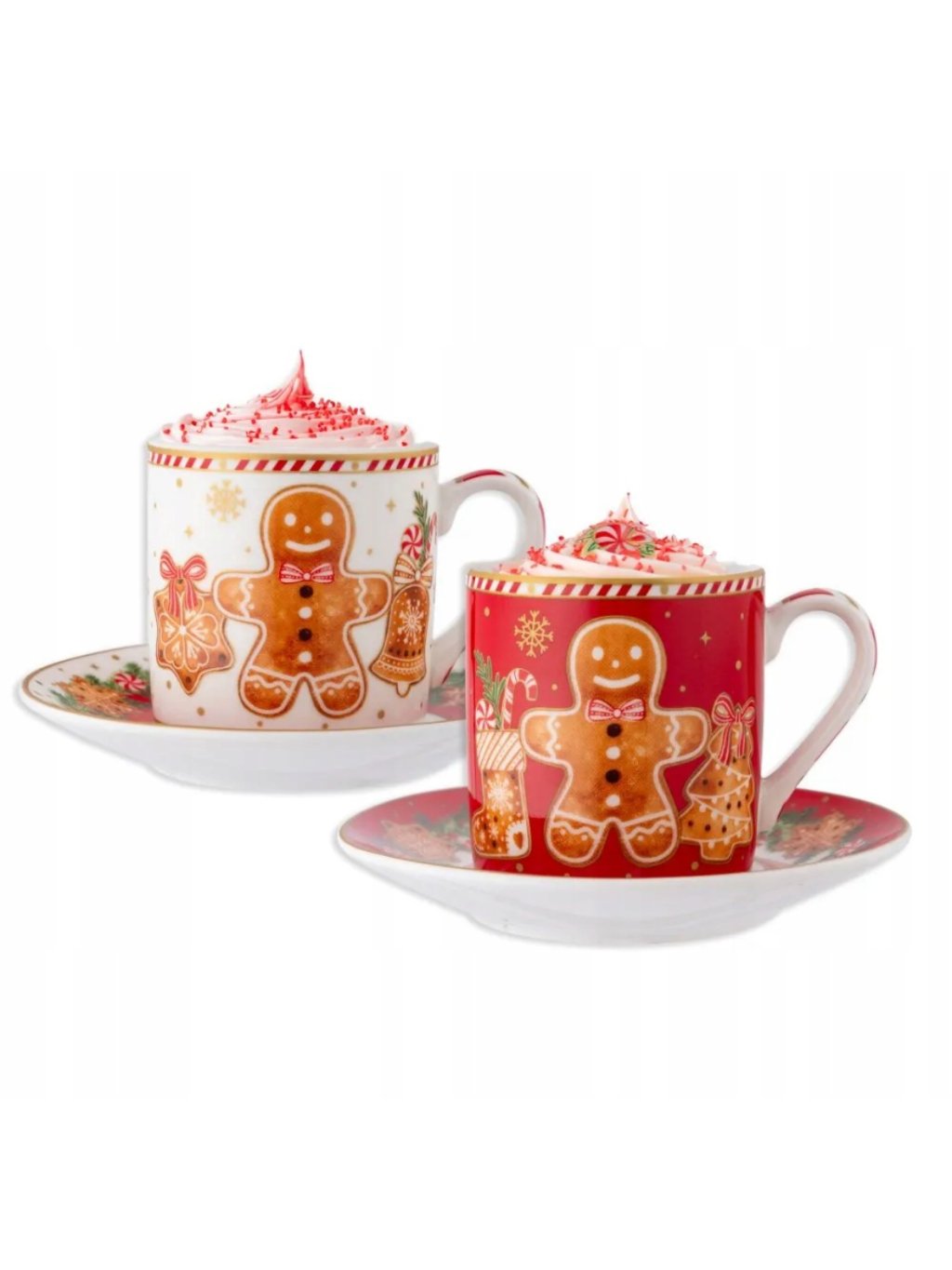 Sada 2 šálků s podšálky z kolekce " Fancy Gingerbread " vyrobených z porcelánu, každý o objemu 100 ml, je perfektní volbou.
