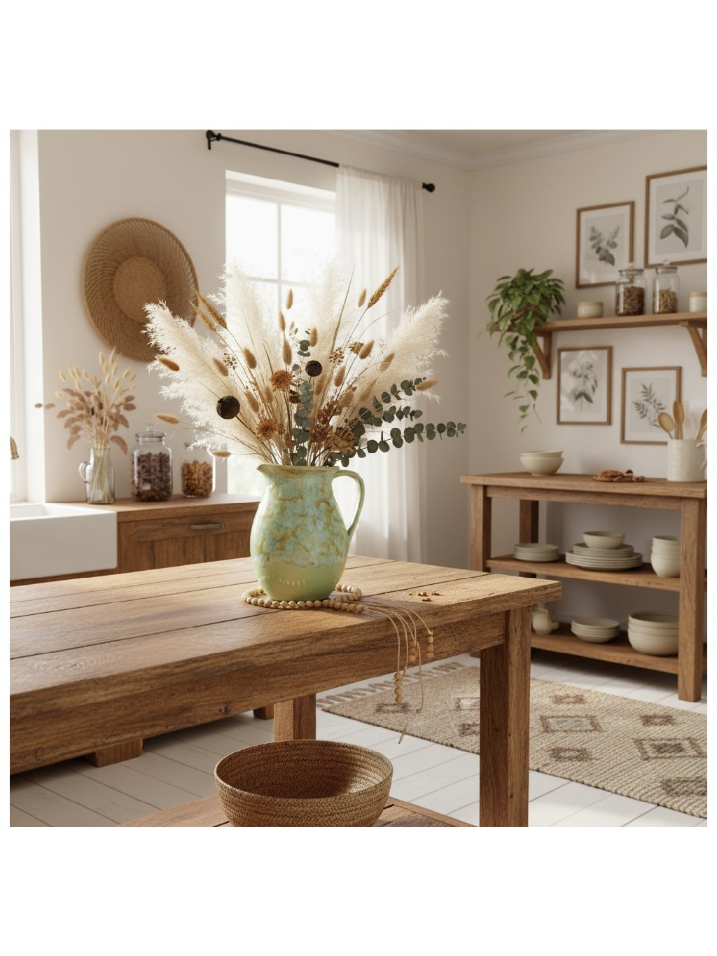 Váza se skvěle hodí pro pokojové rostliny, bylinky i sušené dekorace. Boho styl vnáší do interiéru pocit klidu, lehkosti a přirozené elegance, a proto se tento kousek snadno sladí s moderním, skandinávským i rustikálním interiérem.
