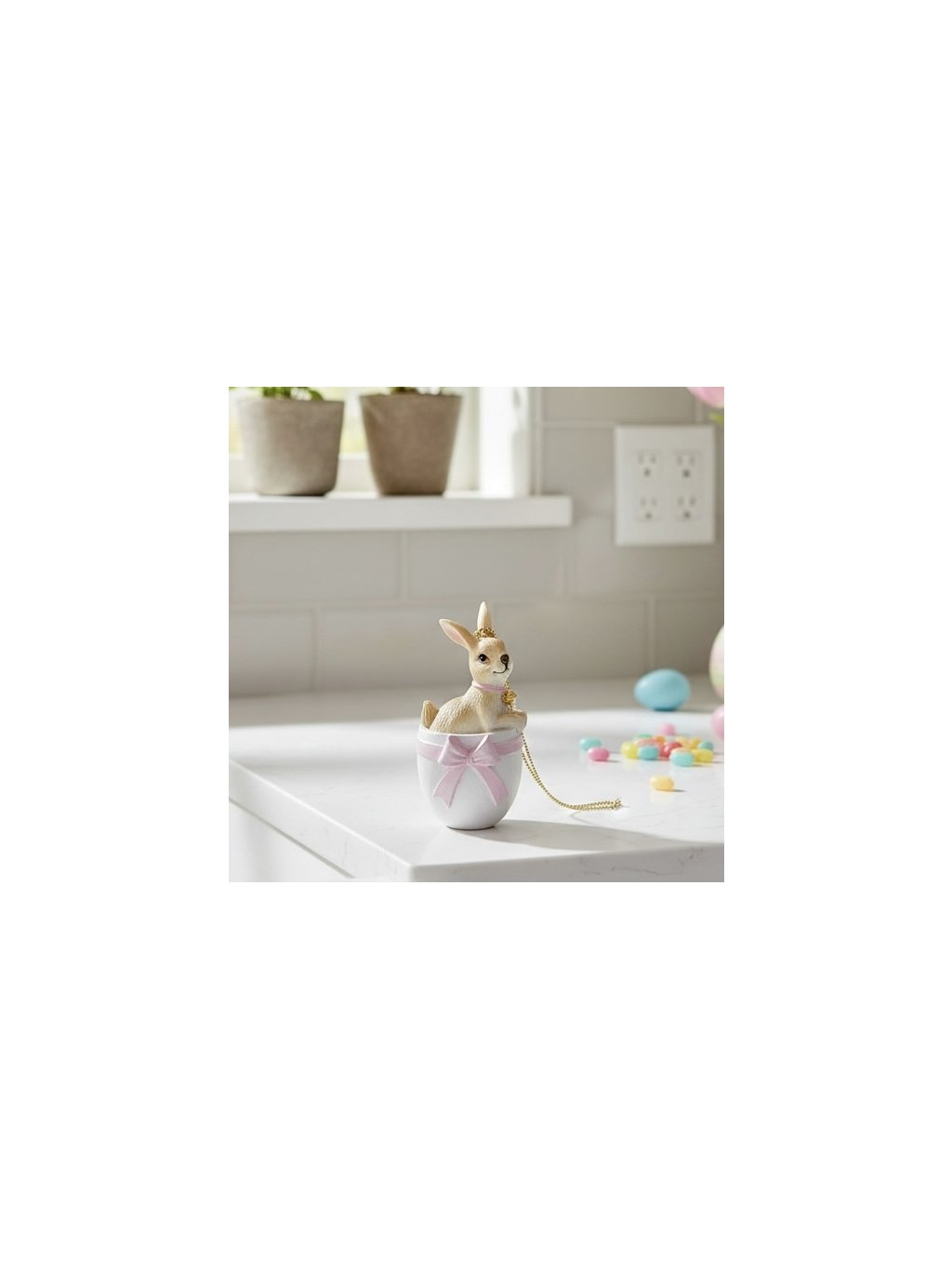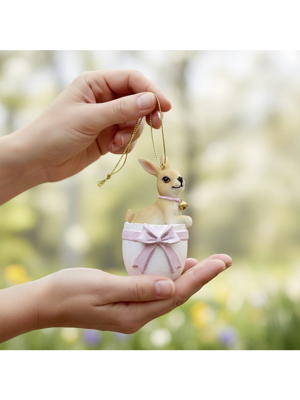 Velikonoční dekorace k zavěšení od značky Clayre & Eef. Tento půvabný zajíček v ozdobném kelímku s růžovou mašlí je ideální pro zavěšení na větvičky, věnce nebo do velikonočních aranžmá. Dodá interiéru hravý a sváteční nádech.
