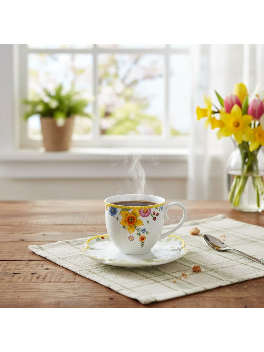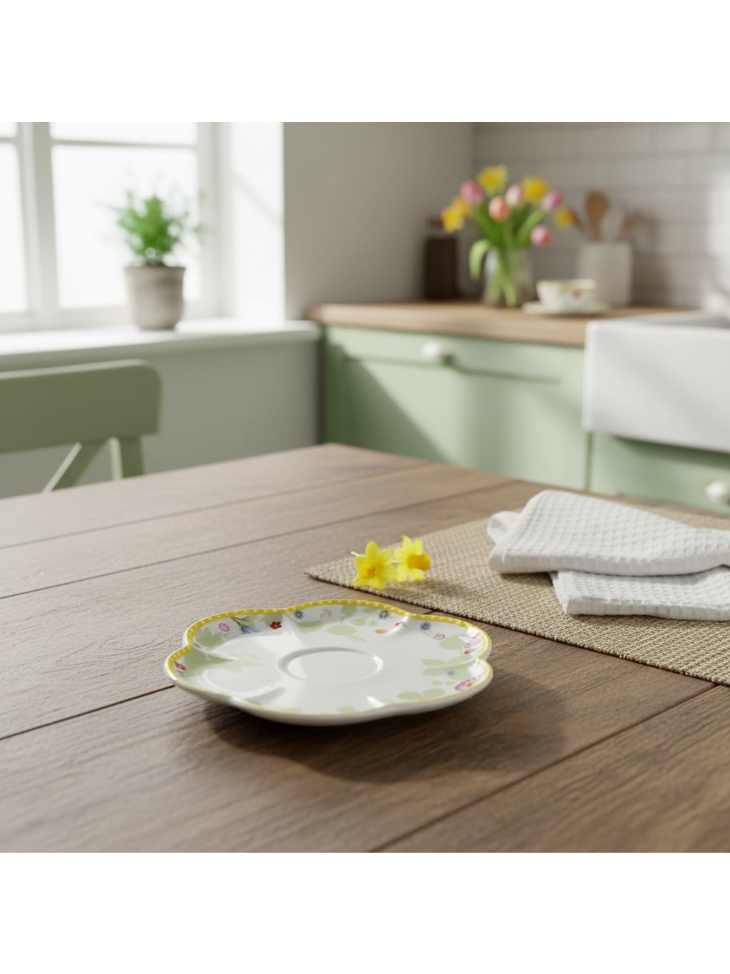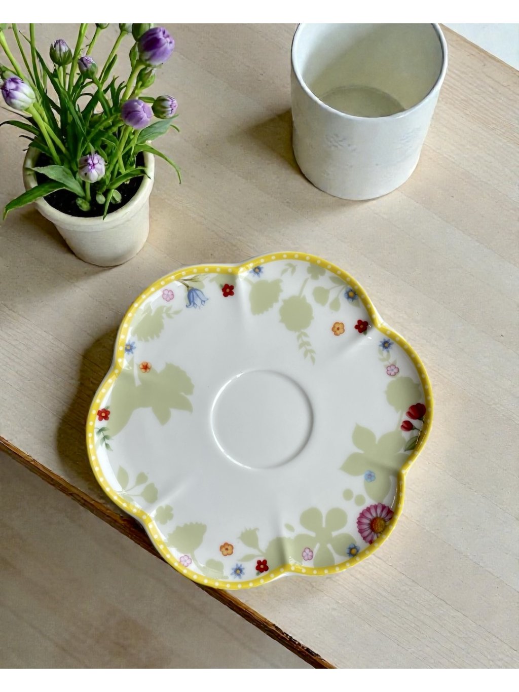Jedná se o porcelánový podšálek 17 cm určený pro šálek kávy ze série Spring Awakening od společnosti Villeroy & Boch. Je zdobena stejnými květinovými motivy.