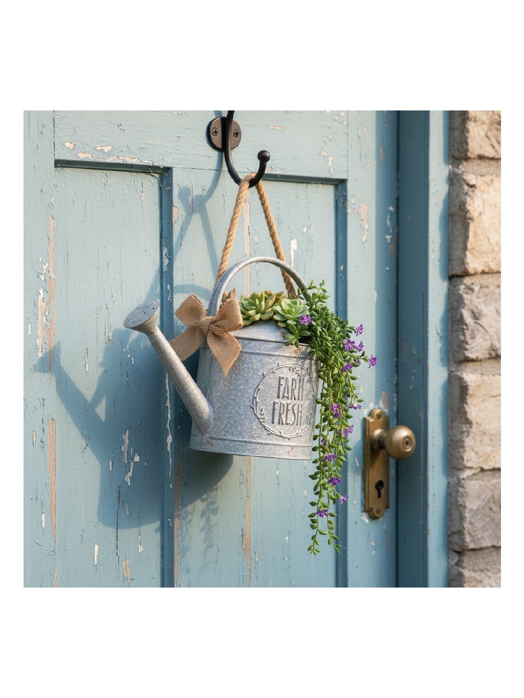 Kovová dekorační konev v šedém retro stylu je výrazným doplňkem do interiéru i na zahradu. Jemná patina a nápis „Farm Fresh“ jí dodávají venkovský nádech, který krásně vynikne na podlaze, komodě nebo terase. Skvěle poslouží jako stylová dekorace samostatně i v kombinaci se sušenými či umělými květinami.